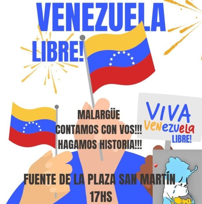 Este sábado 17 de agosto, a las 17:00, la Plaza San Martín de Malargüe será el escenario de una concentración en apoyo al pueblo venezolano. Convocados bajo el lema «Hagamos historia juntos en honor a la libertad», los malargüinos han sido convocados a reunirse para expresar su solidaridad con aquellos que sufren bajo el régimen dictatorial de Nicolás Maduro en Venezuela.