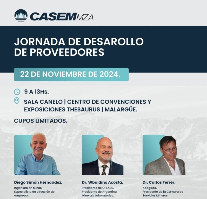 El próximo viernes 22 de noviembre, de 09:00 a 13:00, se realizará la Jornada de Desarrollo de Proveedores para la minería en la Sala Canelo del Centro de Convenciones y Exposiciones Thesaurus.