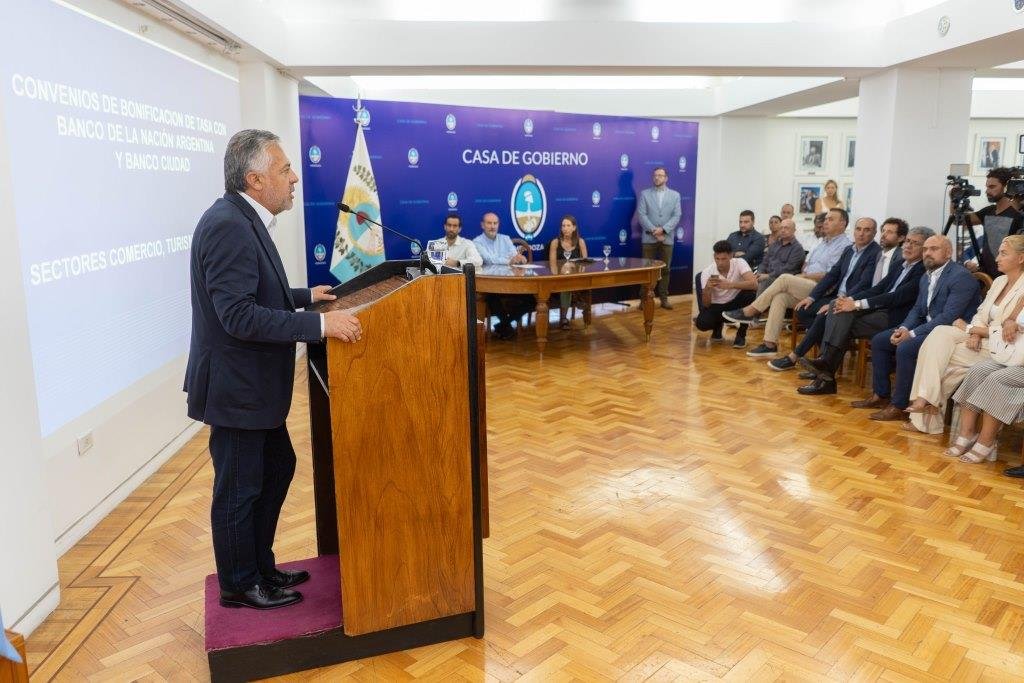 Particularmente sobre la línea de financiamiento que se presentó este martes, Cornejo detalló: “Hace algunos meses ofrecimos estos mismos convenios con estos mismos protagonistas bancarios para el sector agrícola” y destacó que “hoy estamos agregando a la industria, al turismo y al comercio. No solo las actividades productivas, sino también actividades de servicio”.