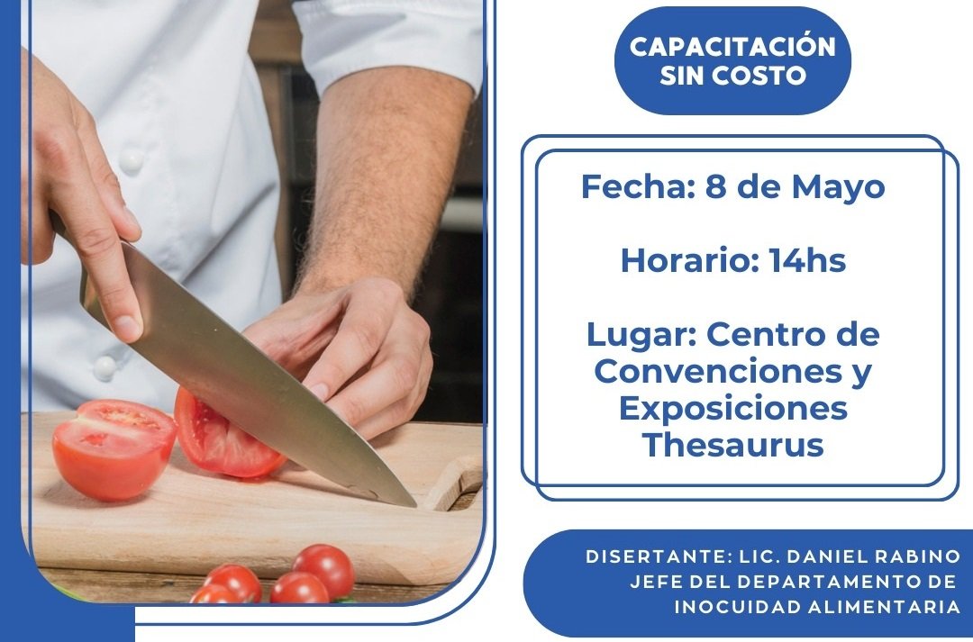 La Municipalidad de Malargüe, en conjunto con el Gobierno de Mendoza, invita a comerciantes y público interesado a participar de una capacitación gratuita sobre Manipulación Segura de Alimentos. La actividad se desarrollará mañana, jueves 8 de mayo, a las 14:00 horas, en el Centro de Convenciones y Exposiciones Thesaurus.
