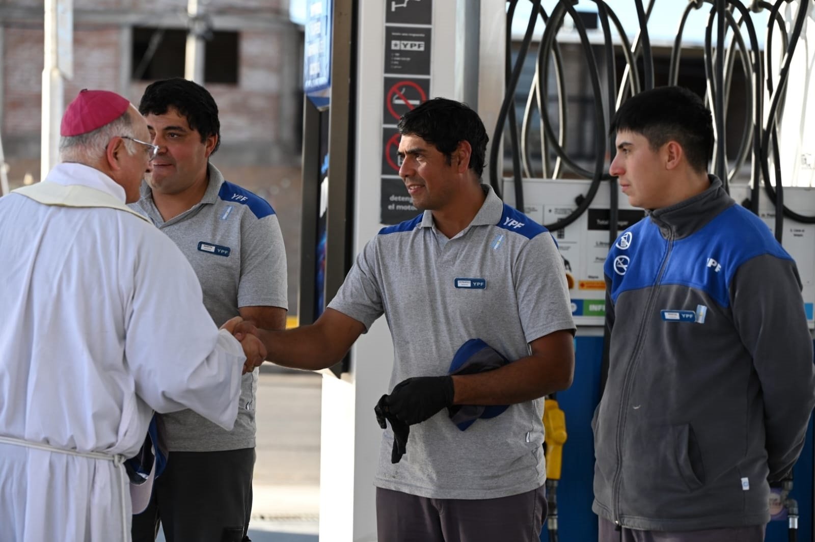Durante la peregrinación, mientras encabezaba la columna junto al intendente Celso Jaque y otros funcionarios, monseñor Mazzitelli sorprendió al salirse del grupo para dirigirse expresamente a la estación de servicio YPF La Cordillera. Allí, saludó a los empleados que se encontraban trabajando y les agradeció personalmente por su labor, en una fecha tan significativa como el Día del Trabajador.