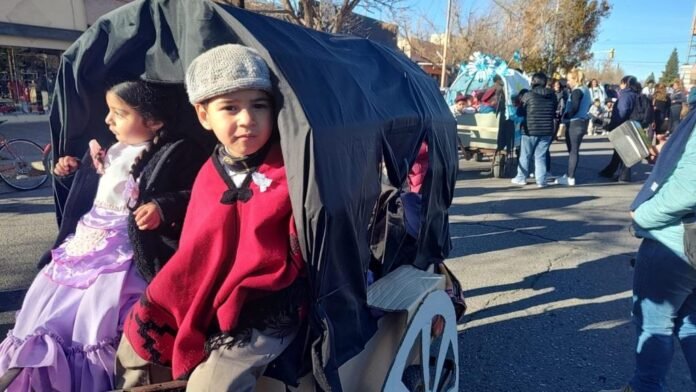 Niños con galeras, niñas con vestidos antiguos y carretas realizadas por las familias recorrieron el centro de Malargüe para conmemorar el 25 de mayo.