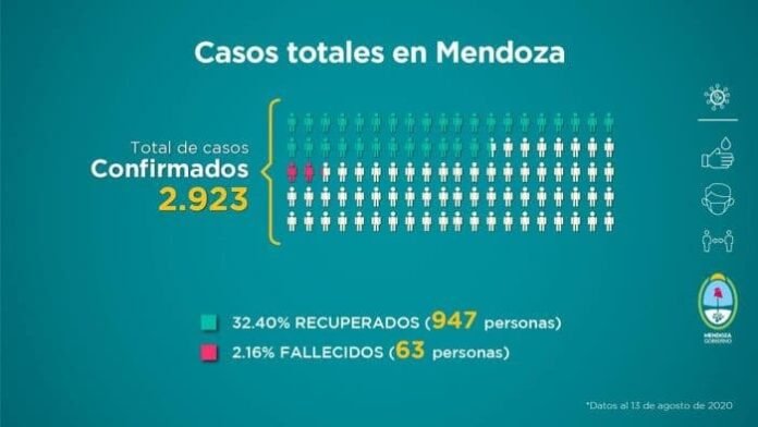 Los primeros datos que se desprenden desde que comenzó la pandemia en Mendoza son hasta anoche 2.923 confirmados, 947 recuperados y 63 fallecidos.