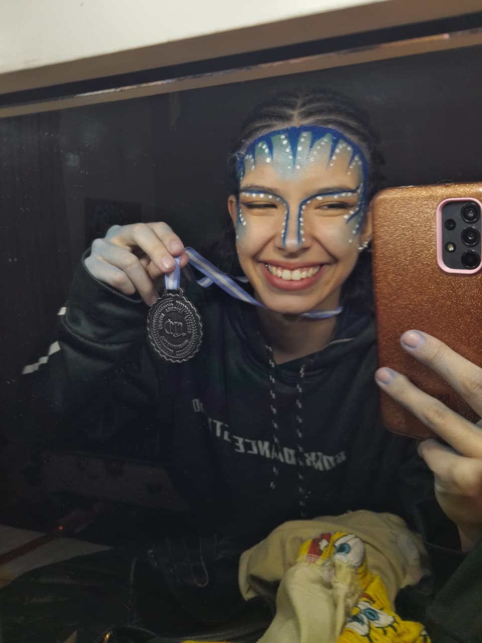 La bailarina Luciana Marini de 17 años, alumna del último año del Instituto Secundario Malargüe, quien clasificó como solista para ir a Carlos Paz, contó a Ser y Hacer que comenzó a bailar danzas árabes hace cuatro años; empezó a competir en 2022 y en 2023 obtuvo 9,10 como solista, clasificación que le permitió viajar a Mar del Plata. En esta ocasión se presentó con dos propuestas: un solista de fusión samba brasilera con árabe y el grupal “Avatar”, una percusión inspirada en la película, con maquillaje corporal y bastones, que alcanzó 9,80 de puntaje. Luciana explicó que transitó la fecha con emoción y un plus de entrega, ya que el próximo año iniciará estudios superiores y se despedirá de la academia.