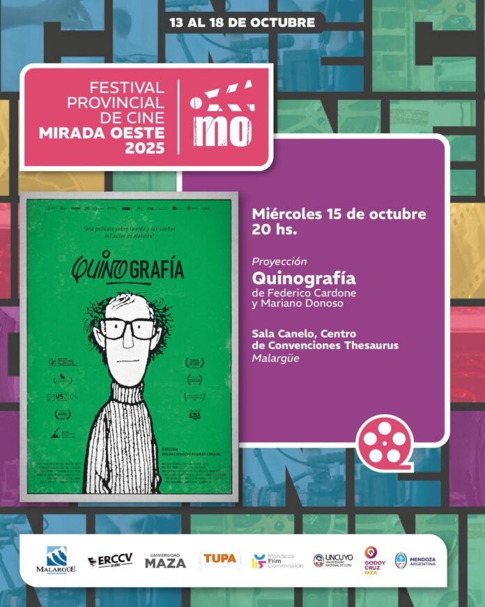 Este miércoles 15 de octubre, a las 20, se proyectará la película Quinografía en la Sala Canelo del Centro de Convenciones Thesaurus. La función forma parte del Festival Provincial de Cine Mirada Oeste 2025, que busca promover la producción audiovisual mendocina y nacional.