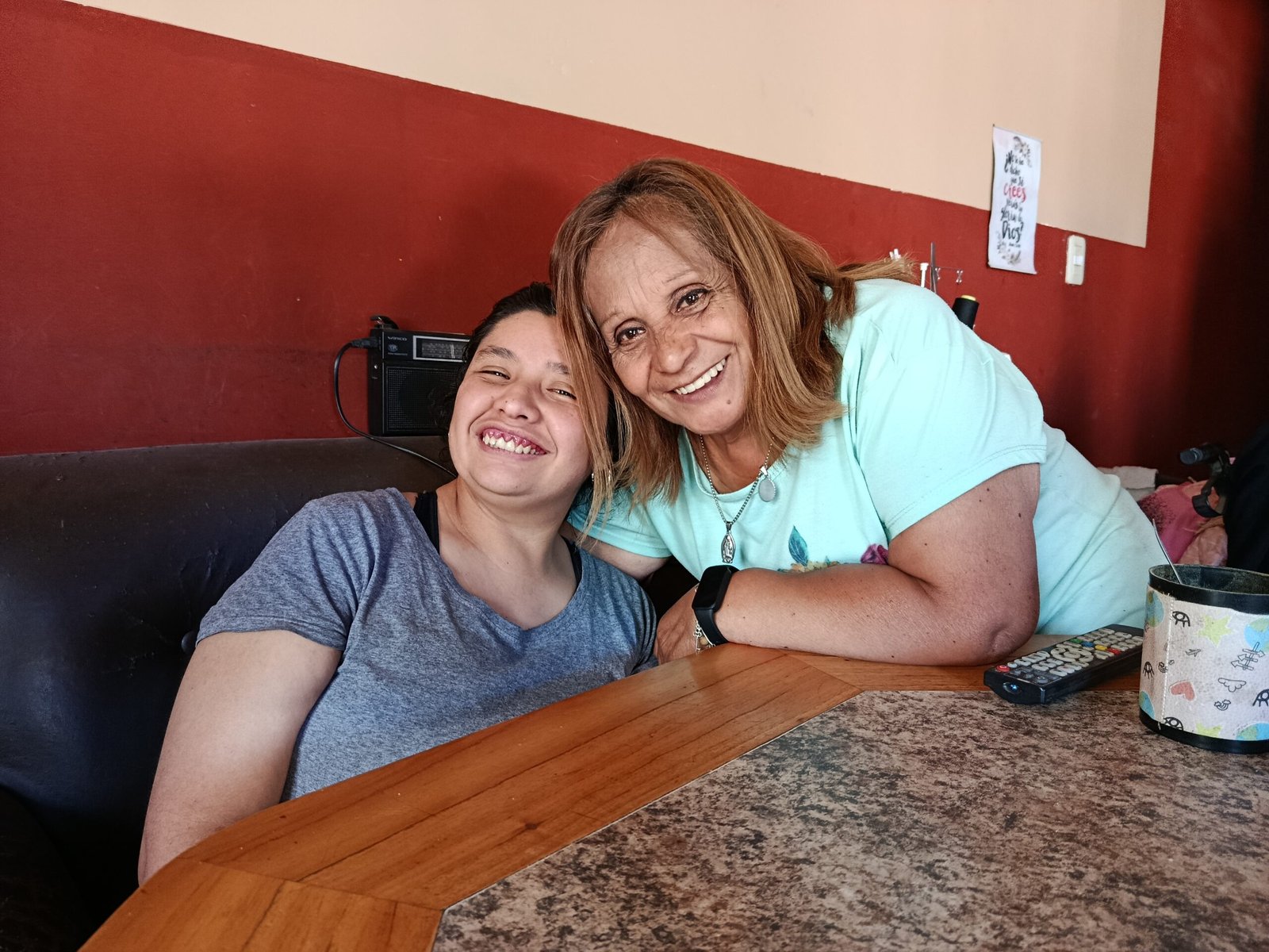 Habla de ellos con una ternura que ilumina su rostro. Walter, el mayor, la acompaña siempre con mensajes y atenciones diarias. Esteban, el segundo, vive con ella y es su apoyo constante. Y luego está Cecilia, la niña que cambió su vida para siempre, aquella a quien María llama “mi sol” y “mi ángel”.