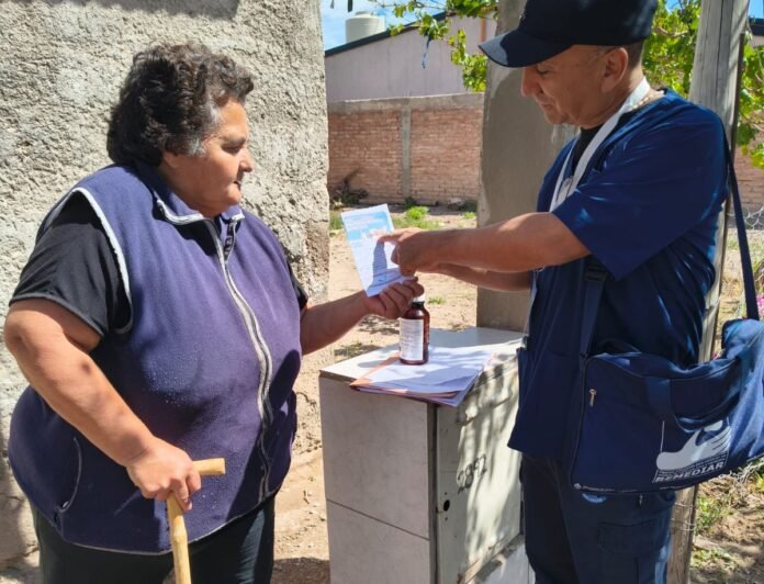 El equipo de Agentes Sanitarios del Área Sanitaria Malargüe inició una nueva campaña de prevención de hidatidosis, una enfermedad zoonótica endémica en la región. Las acciones comenzaron en el barrio Nueva Esperanza, donde los agentes, debidamente identificados con chaquetas azules y credenciales oficiales, realizan la entrega del antiparasitario Praziquantel, material informativo y relevamiento de datos casa por casa.