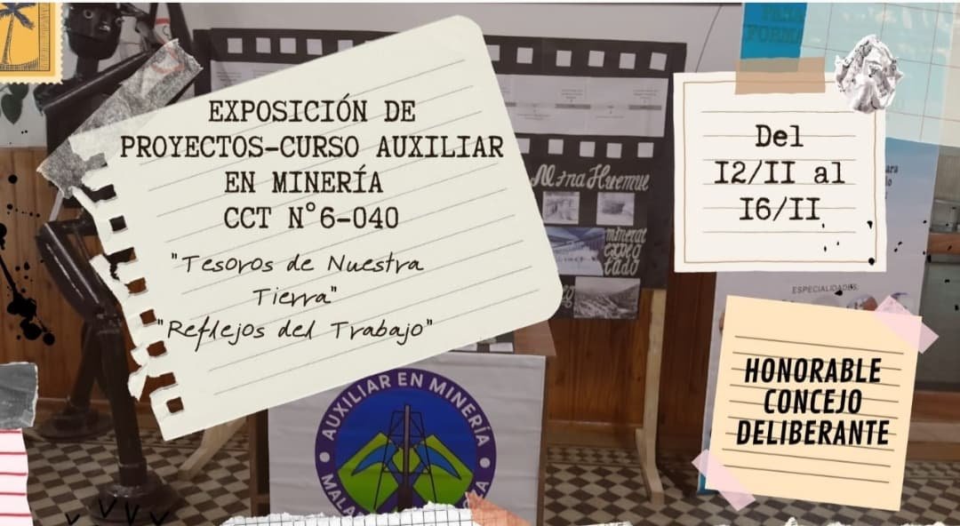 El Concejo Deliberante de Malargüe es escenario, hasta el 16 de noviembre, de una exposición educativa protagonizada por estudiantes del Centro de Capacitación para el Trabajo N° 6-040 “Atilio Balmaceda”. Los alumnos del curso de Auxiliar en Minería, acompañados por su docente Dalma Alanís, presentaron dos proyectos realizados bajo la metodología de Aprendizaje Basado en Proyectos denominados «Tesoros de nuestra tierra, reflejos del trabajo».
