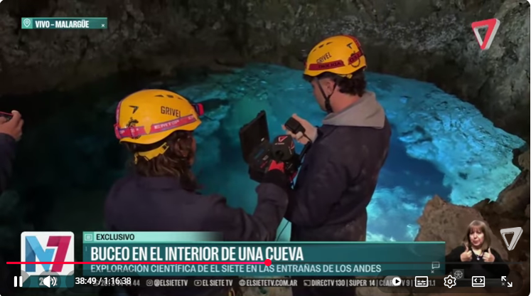 Una emisión especial de Canal 7 mostró el interior de una cueva ubicada en terrenos de la Familia Guajardo de Poti Malal y el lago Croacia, un ambiente subterráneo de alto valor geológico ubicado en Malargüe. La exploración fue realizada con buzos y especialistas autorizados por el gobierno provincial.