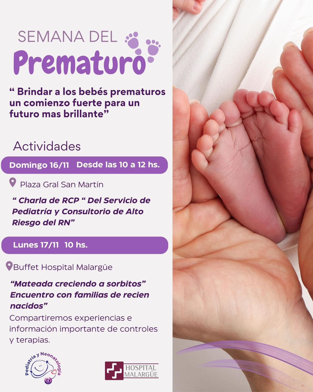 El Hospital Malargüe lleva adelante una completa agenda de actividades en el marco de la Semana del Prematuro, que se desarrolla del 11 al 17 de noviembre en todo el país. Bajo el lema “Brindar a los bebés prematuros un comienzo fuerte para un futuro brillante”, la institución impulsa acciones dirigidas tanto a familias como a profesionales de la salud.