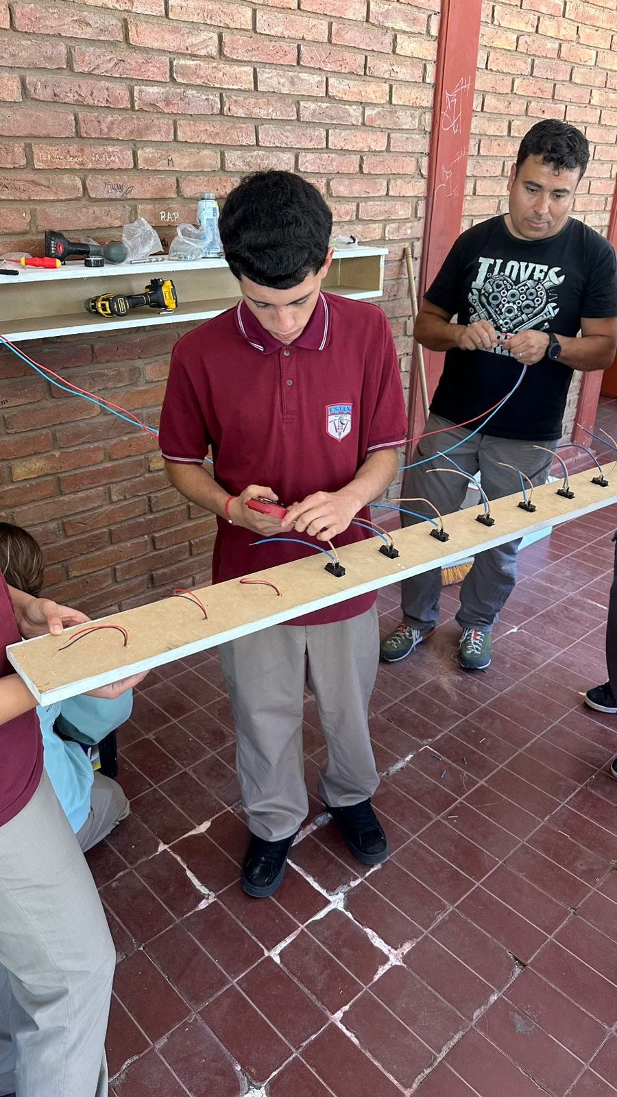 Los docentes de los distintos espacios curriculares acompañaron el proceso mediante un trabajo articulado que permitió aplicar conocimientos teórico–prácticos en cada etapa. La planificación incluyó análisis técnicos, diseño del dispositivo y la revisión de aspectos vinculados a seguridad e higiene industrial.