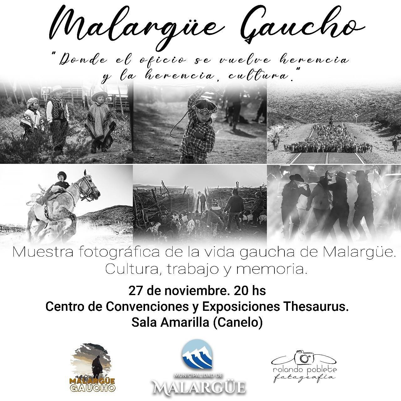 Una muestra fotográfica titulada “Malargüe Gaucho” del Fotógrafo Rolando Poblete, pone en valor la vida gaucha en los campos y quebradas de Malargüe, retratando a quienes mantienen vivo el oficio con orgullo y sentido comunitario. La exposición se inaugurará el 27 de noviembre de 2025, a las 20:00, en el Centro de Convenciones Thesaurus de la ciudad.