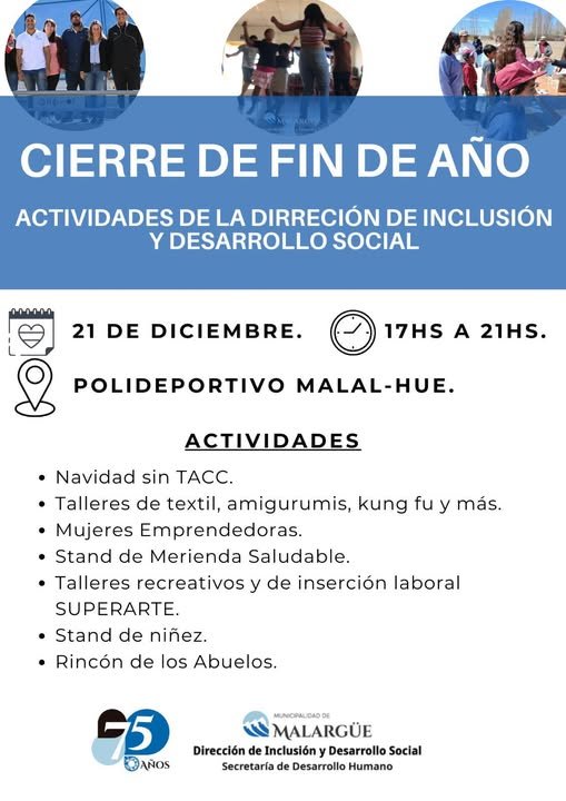 Malargüe se prepara para vivir un fin de semana intenso, con propuestas culturales, solidarias y recreativas pensadas para todas las edades. Desde espectáculos musicales y ferias, hasta pesebres vivientes y actividades comunitarias, la agenda ofrece múltiples alternativas para disfrutar en familia y acompañar iniciativas locales.