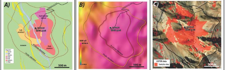 En el mismo reporte se precisa que El Perdido abarca 6.878 hectáreas y corresponde a un sistema Cu-Au-Mo definido en superficie pero que, hasta ahora, no había sido perforado. El objetivo geológico está asociado a una huella de alteración hidrotermal de aproximadamente 2 por 2 kilómetros, con geoquímica anómala de cobre, oro y molibdeno, intrusivos tipo pórfido y brechas hidrotermales.