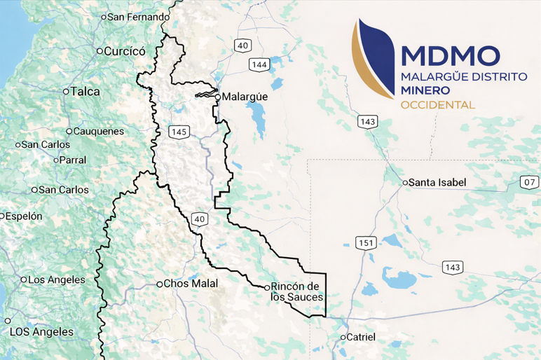 El Malargüe Distrito Minero Occidental (MDMO) es un único distrito minero que ocupa una amplia franja del sector cordillerano y centro-sur del departamento de Malargüe.