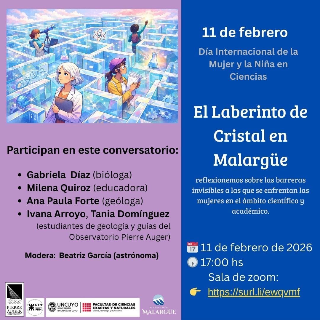 El Observatorio Pierre Auger organiza en Malargüe el conversatorio El Laberinto de Cristal, una propuesta de reflexión y divulgación científica que se desarrollará en el marco del Día Internacional de la Mujer y la Niña en Ciencias, que se conmemora cada 11 de febrero.