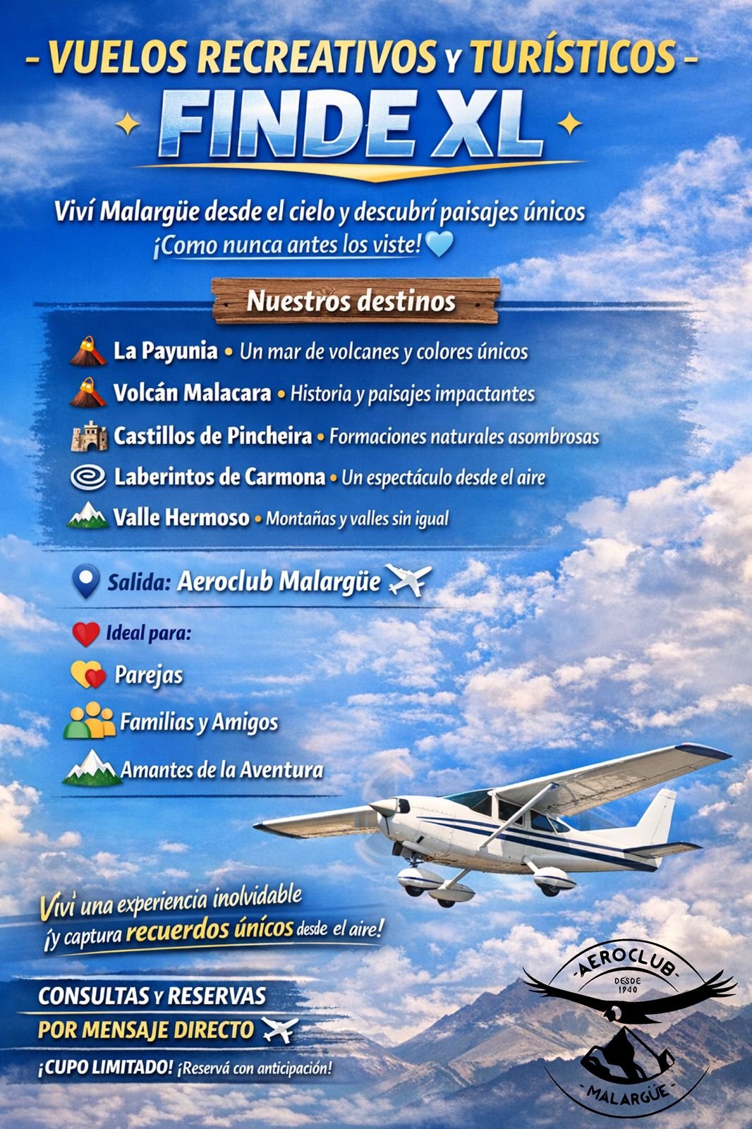 🎟 Reservas por mensaje directo en redes oficiales del Aero Club Malargüe.