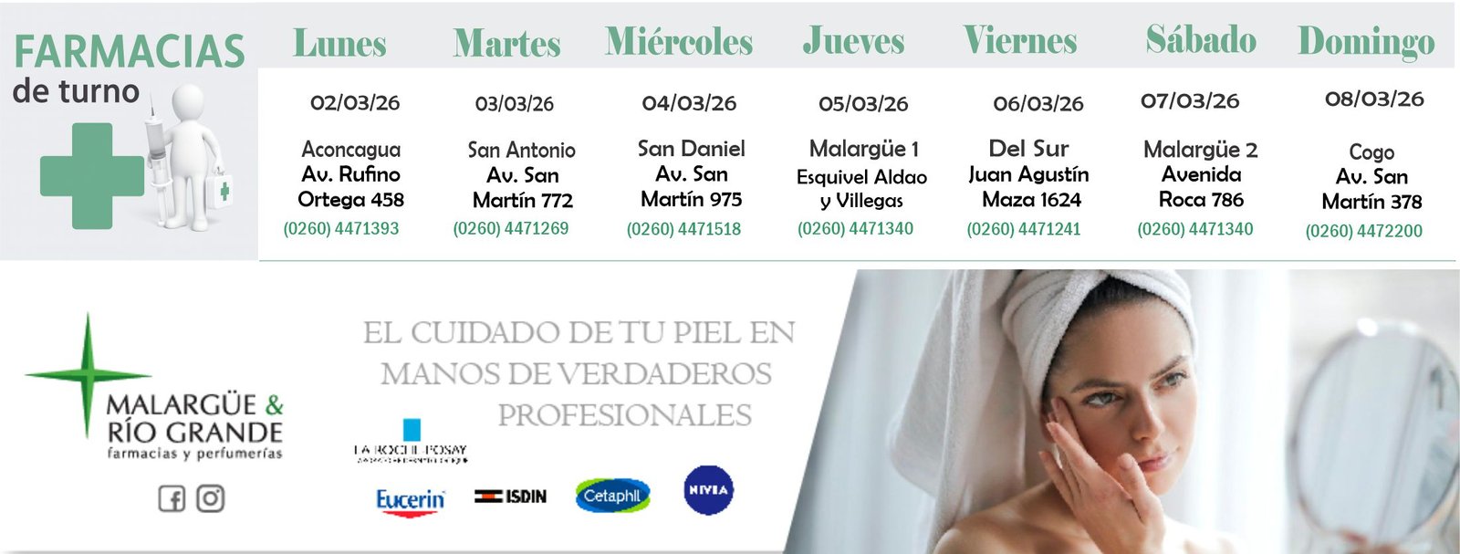 Farmacia Malargüe 2 – Avenida Roca 786 – Tel. (0260) 4471340 - Miércoles 04/03/2026