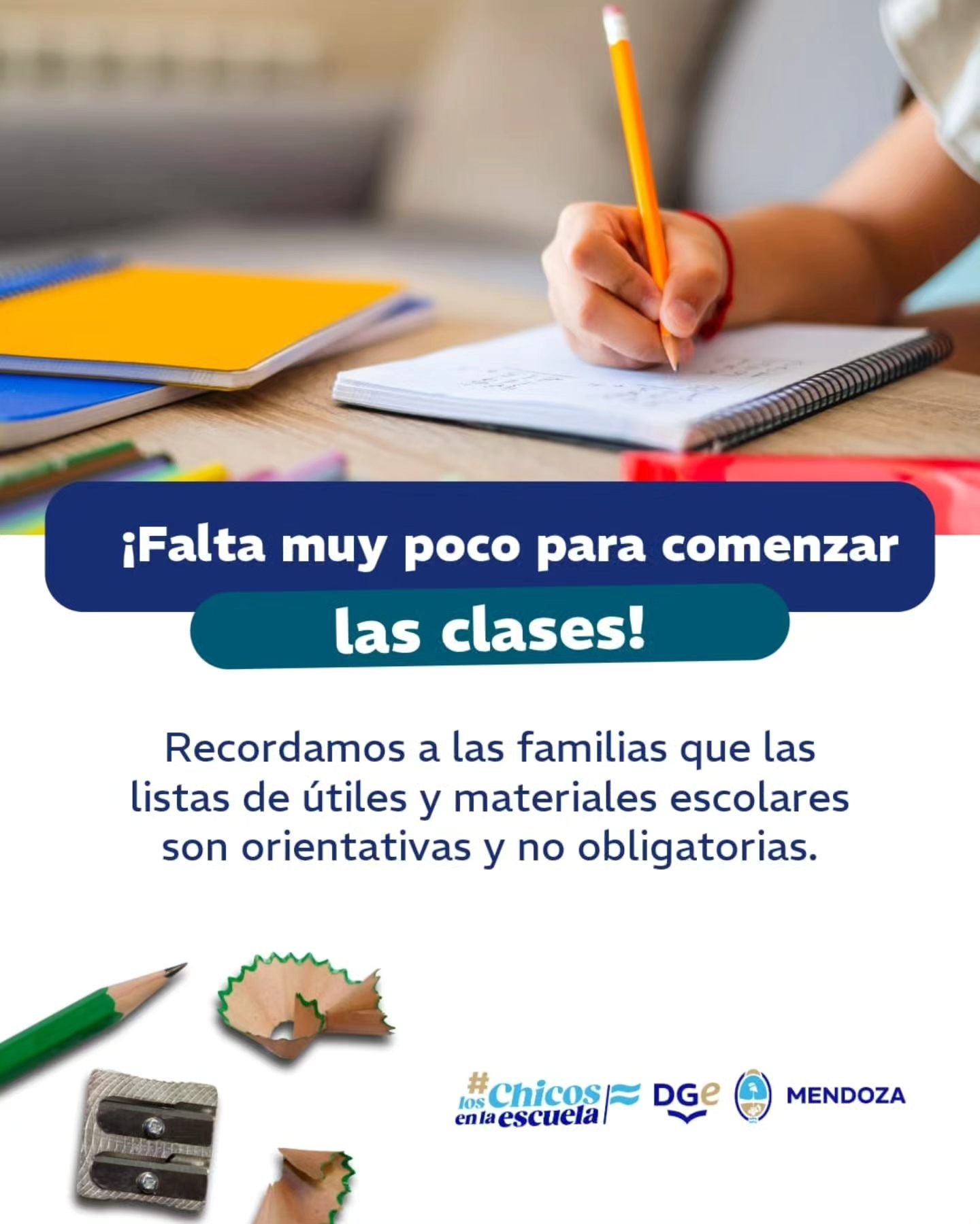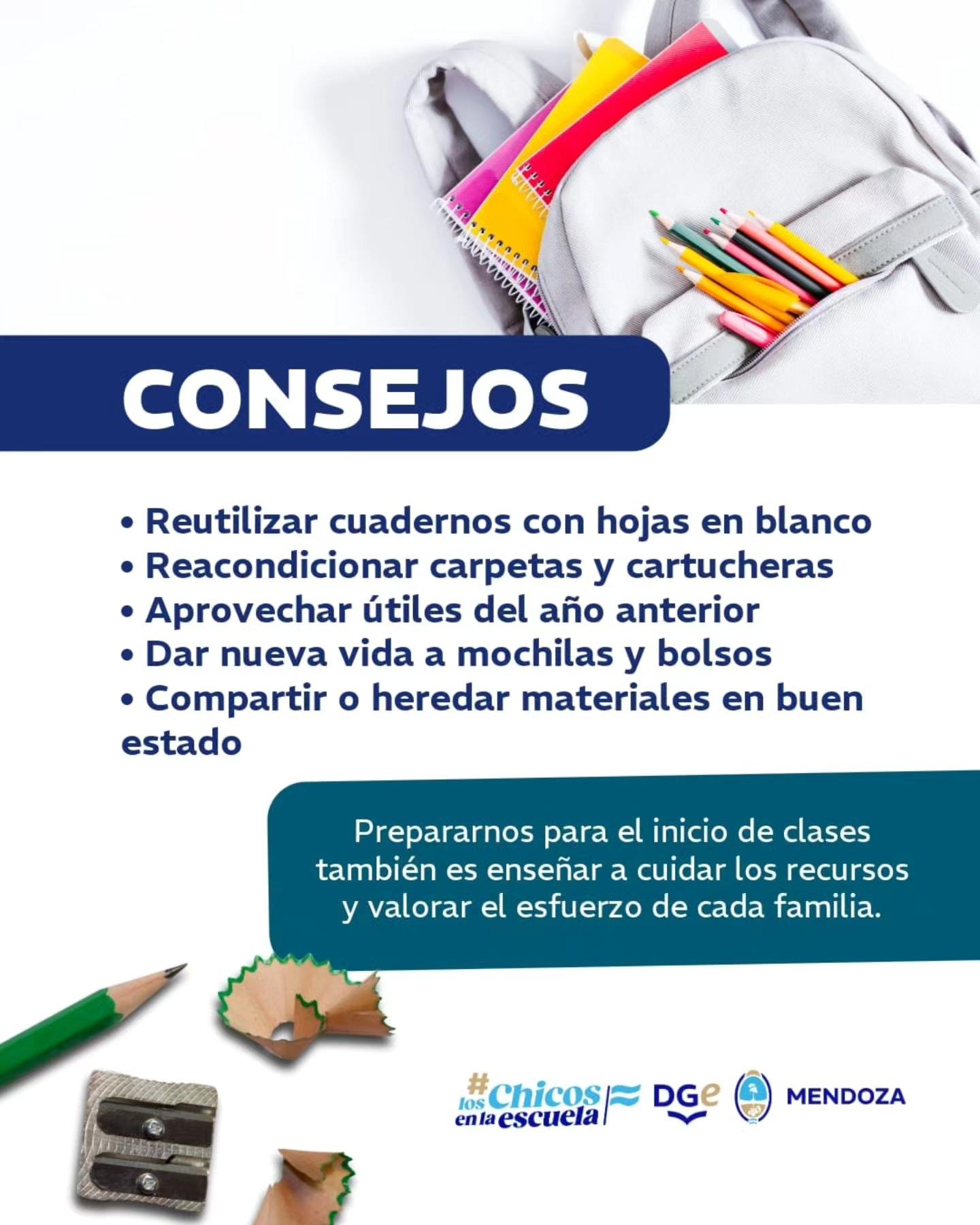 El Gobierno de Mendoza y la Dirección General de Escuelas continúan difundiendo mensajes vinculados al inicio del ciclo lectivo, promoviendo un regreso a clases organizado y con conciencia sobre el uso de los recursos.