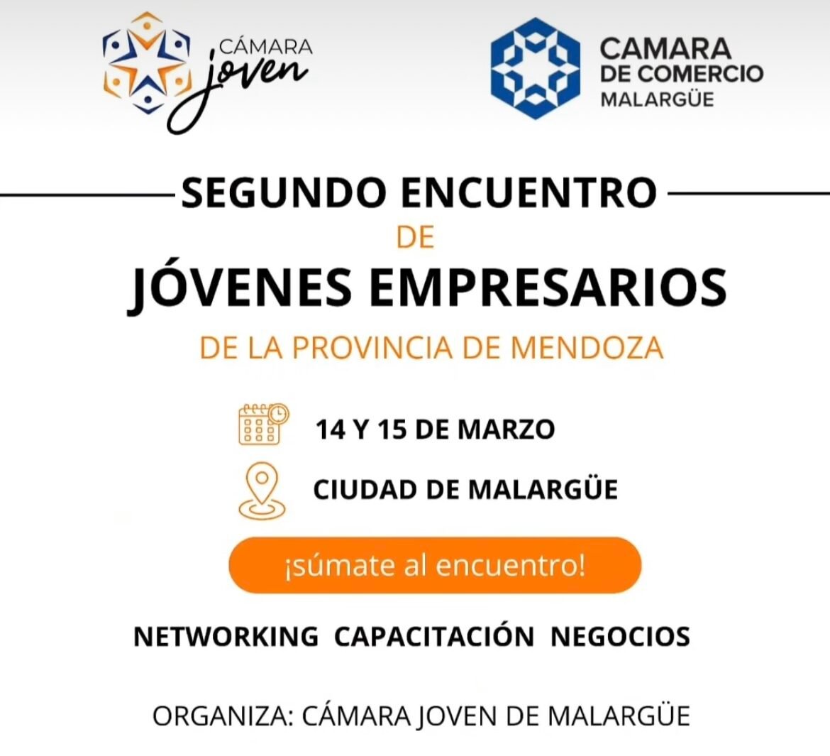 La Cámara Joven de Malargüe anunció un encuentro para emprendedores y jóvenes empresarios este sábado 14 de marzo con dinámicas, capacitaciones en marketing y negocios, y un espacio de coworking.