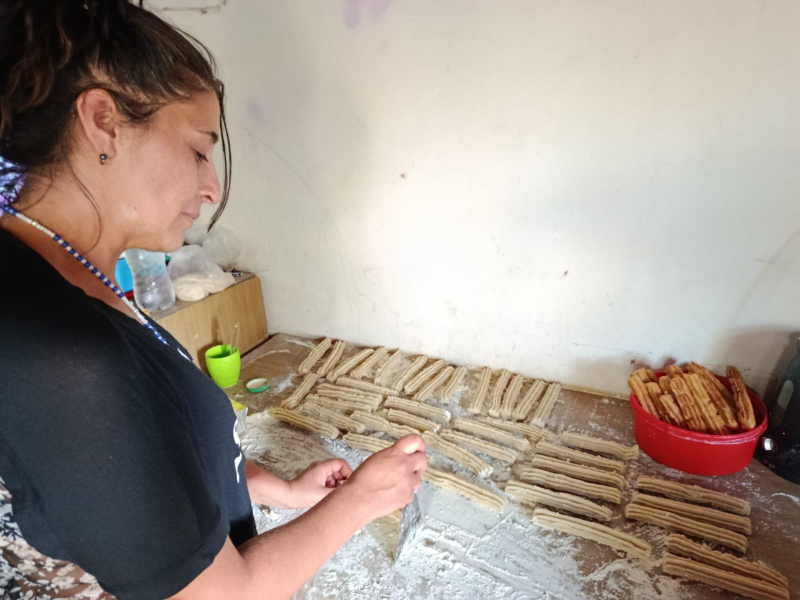 Llegué y la escena no tenía nada de postal. No era “emprendedurismo”, no era “historia inspiradora” en el sentido liviano con el que a veces se cuentan estas cosas. Era necesidad. Era desesperación. Débora Liz Martínez, 39 años, venida de Comodoro Rivadavia, estaba con harina en la cara porque estaba cocinando a contrarreloj. Panes, churros, lo que pudiera vender para que ese día, al menos, alcance para comer.