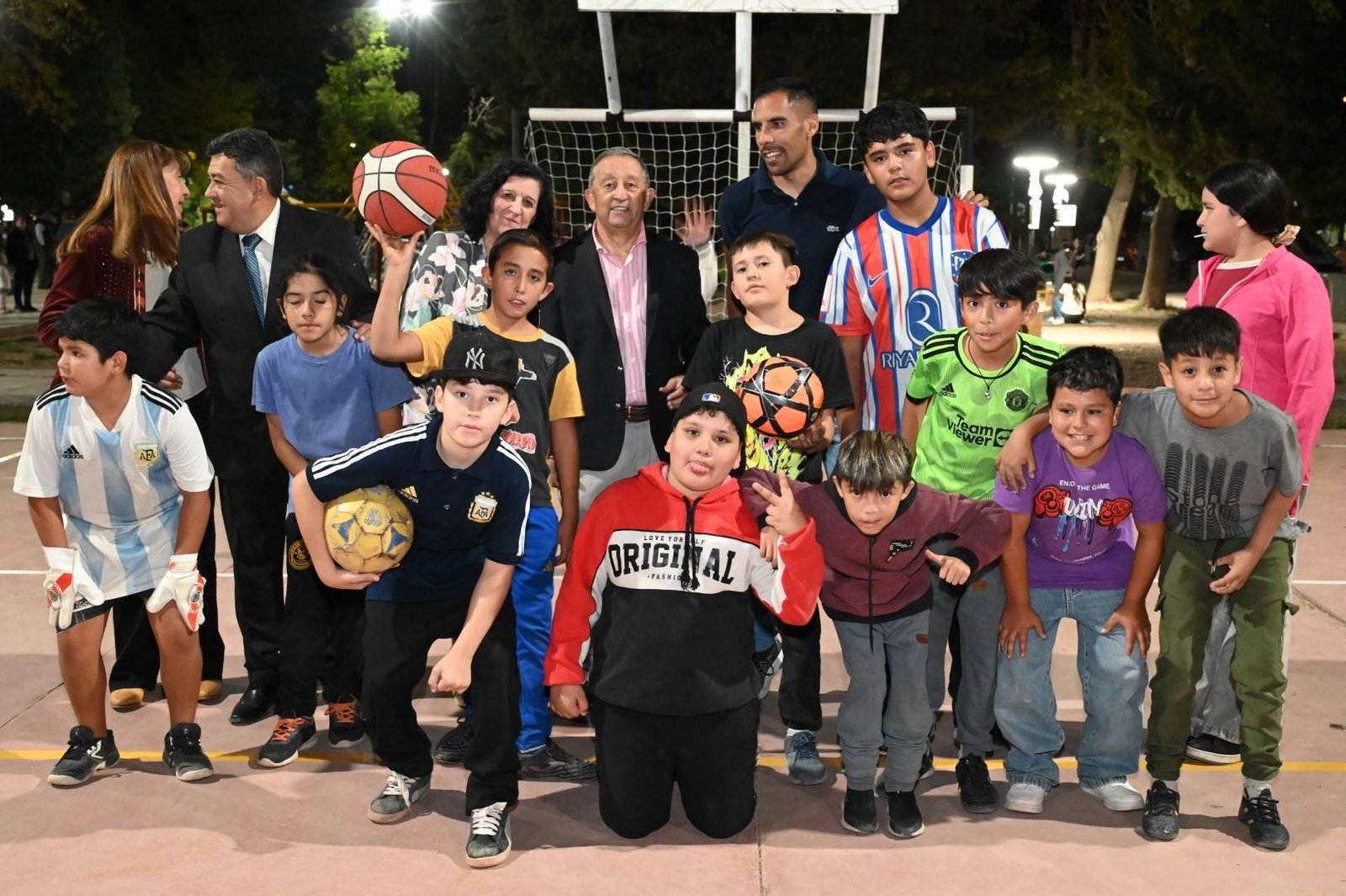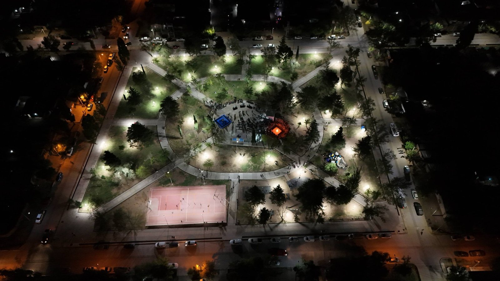 “Muy contentos por la inauguración de la plaza nuevamente. Si empezamos por el sistema de iluminación, para mí es un punto fundamental porque tiene un sistema a tres metros de altura, todo iluminación LED solar. No le hemos escatimado en nada en esta plaza”, afirmó. Cuenta también con palmeras de iluminación no solo en el sector del playón deportivo, sino en todo el perímetro para tener una iluminación más en altura.