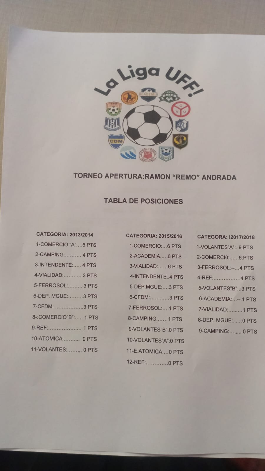 Los resultados de los partidos en las distintas categorías y las posiciones se detallan a continuación: