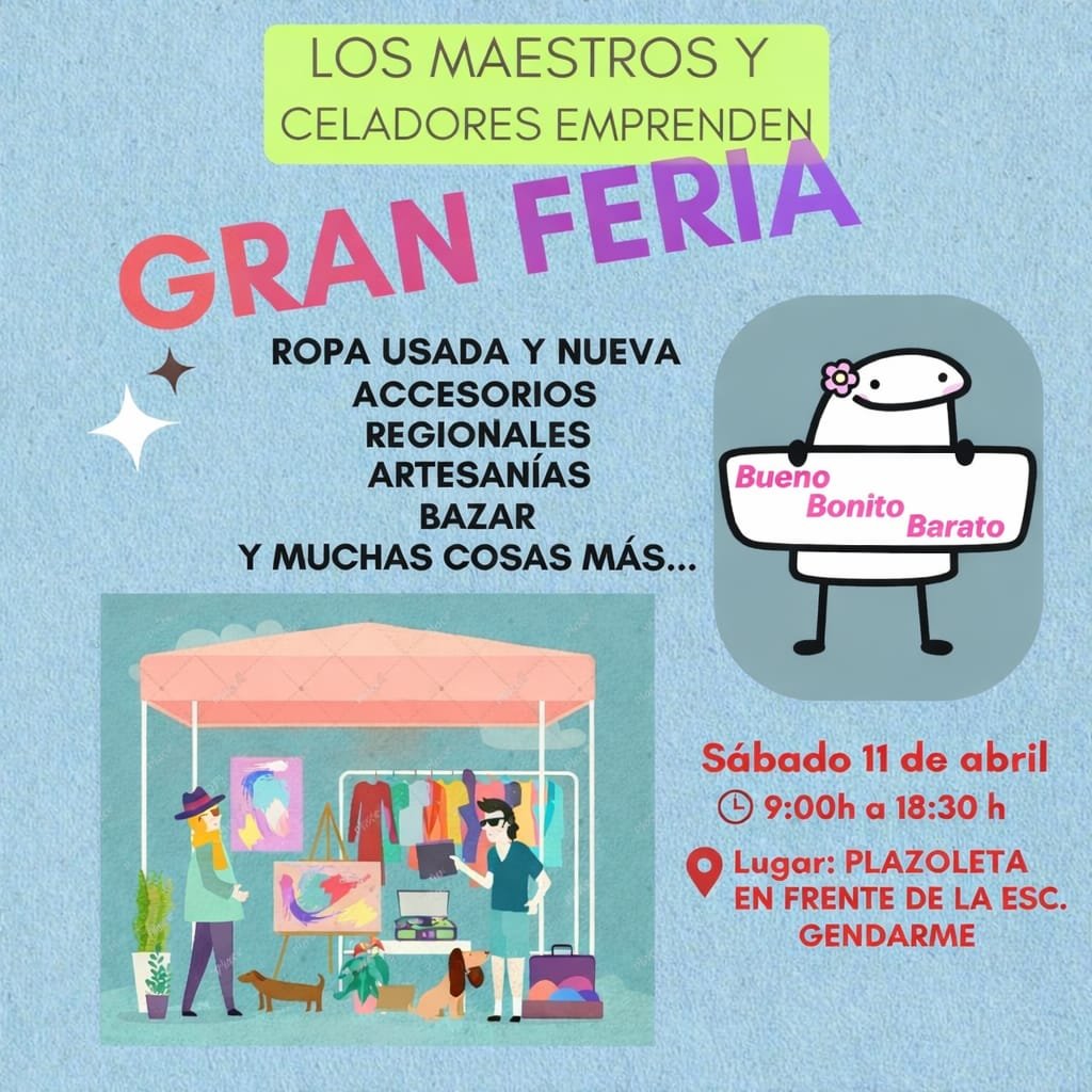 Hoy, en la plazoleta frente a la escuela Gendarme Argentino, se está llevando a cabo una feria impulsada por maestros y celadores que buscan generar un ingreso extra. La iniciativa, que reúne a docentes y celadores de la institución, ofrece una variedad de productos, desde ropa usada y nueva, accesorios, regionales, artesanías y bazar, hasta otros artículos de interés.