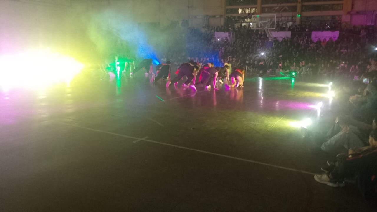 Acto seguido, ingresaron las banderas de ceremonia nacional y provincial, acompañadas por personal directivo de la escuela. Luego, el pasaje de la mascota con el trofeo en juego, el desfile de los alumnos de cada establecimiento y la actuación de un grupo de alumnos en un espectáculo ambientado con juego de luces y sonidos.