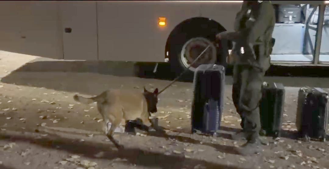 Al efectuar el control en el sector de la bodega del colectivo, el animal reaccionó de manera característica ante la posible presencia de sustancias ilícitas sobre una encomienda, lo que motivó una inspección más detallada del paquete.