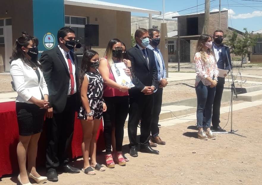El Gobernador Rodolfo Suarez, en el marco de las actividades por el aniversario del departamento de Malargüe, participó del acto de entrega de 10 viviendas pertenecientes al barrio Área Salud.