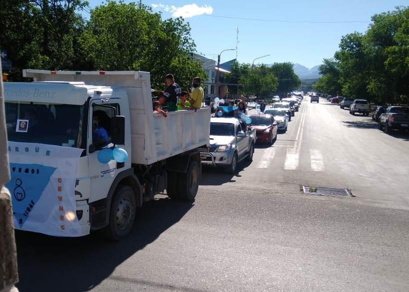 La caravana de vehículos partió desde el hospital Malargüe, tras realizar un abrazo simbólico en estos tiempos de pandemia, y se dirigió luego por Av. Roca al este para después recorrer las arterias más transitadas de la ciudad.