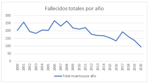 Más allá del año atípico en un contexto de pandemia y por ende de reducción de tráfico, los números evidencian una tendencia a la baja, que ya se había detectado en 2019 y que continúa en este 2020. Incluso antes de la cuarentena, con un febrero con la menor cantidad de fallecidos de los últimos 20 años (cuatro víctimas).