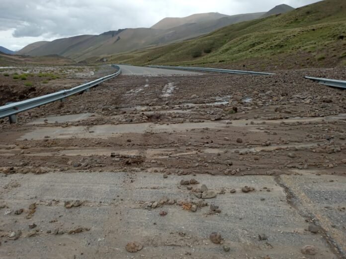 Las loicas – paso internacional Pehuenche: intransitable, por inclemencias climáticas adversas lluvias intermitentes y sedimento sobre la calzada.