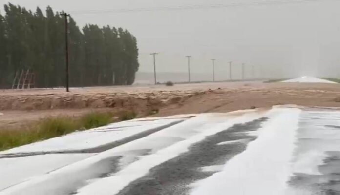 A causa de la precipitación de lluvia y granizo se ha procedido al corte de la ruta nacional 40 frente al barrio Virgen de los vientos, en el acceso norte a la ciudad de Malargüe.